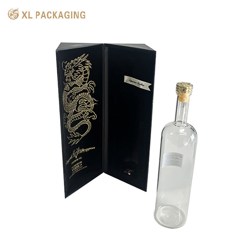 Aumente sus regalos de vino y whisky de primera calidad con nuestra caja de vino personalizada de papel de oro negro magnético, una obra maestra de embalaje de lujo diseñada para mostrar botellas con opulencia y sofisticación.Combinando un exterior negro elegante, estampado de precisión de papel de oro, cierre magnético seguro, y una bandeja de terciopelo revestida de peluche, esta caja transforma el vino y los licores en regalos inolvidables para clientes corporativos, bodas,o celebraciones especiales.